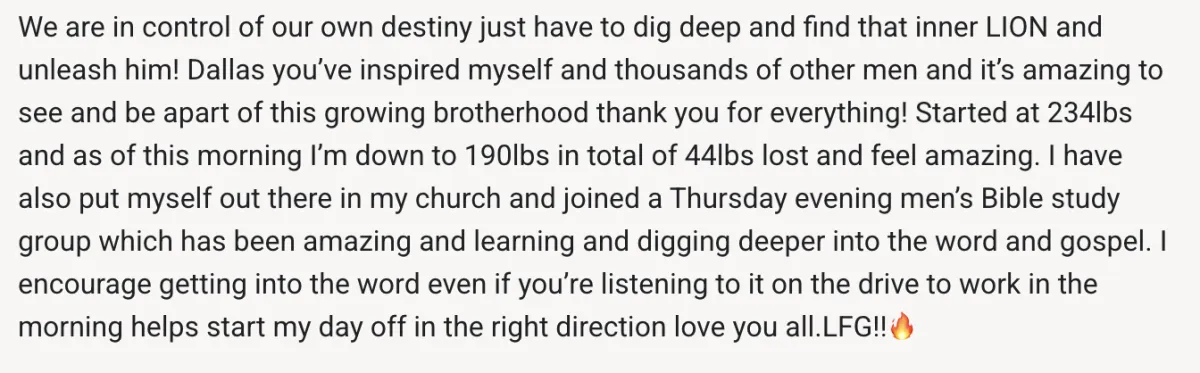 You’ll get guidance in every area that builds a stronger man: mindset, physical discipline, leadership, relationships, and purpose. You’ll also have direct access to the Brotherhood community, where men hold each other accountable and stay locked in on their mission.
